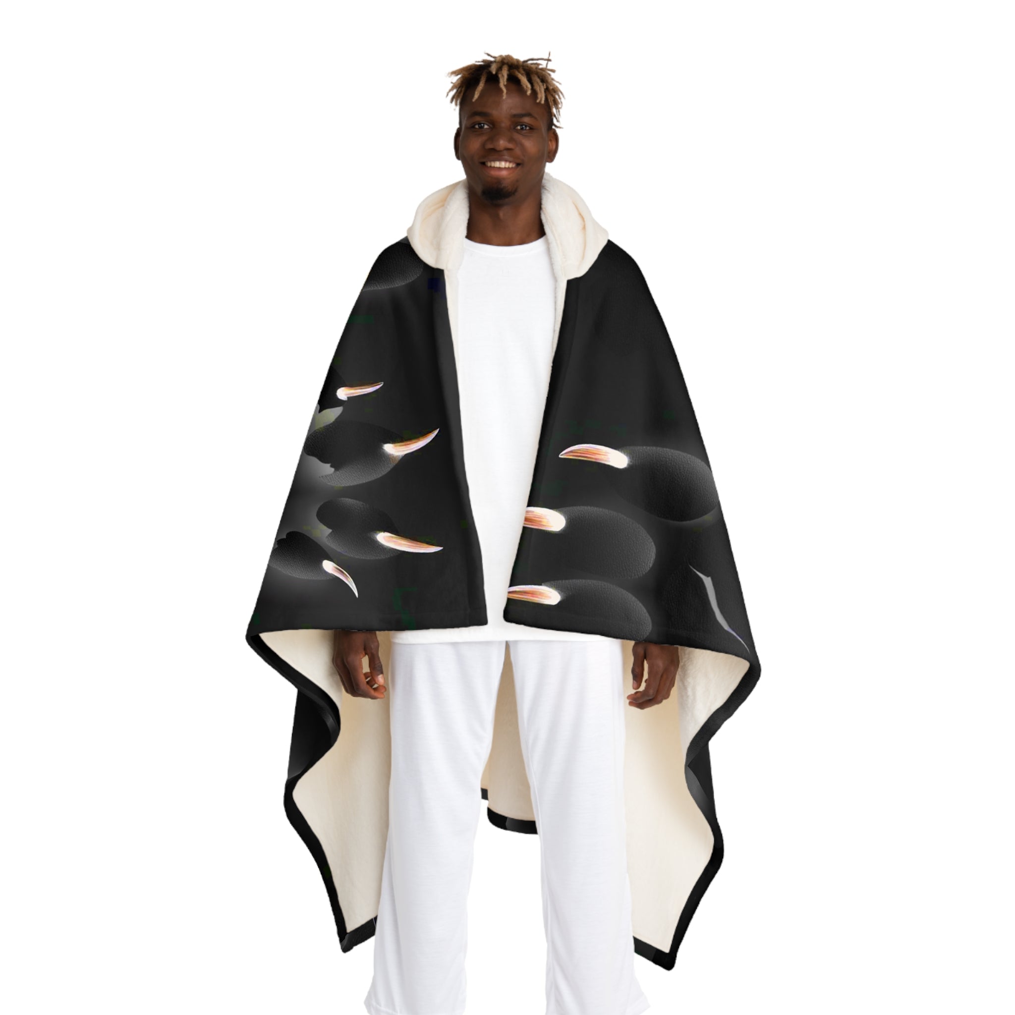 Wrap yourself in a hush of warmth and style with this hooded sherpa fleece blanket. Luxuriously soft fleece on the outside and a cream sherpa-lined hood create a cocoon of comfort that drifts between loungewear and a wearable throw. The generous 70.5" x 52" size drapes easily over shoulders or across a couch, while the durable 100% polyester face holds rich printed details that stay vibrant through everyday use. Thoughtfully pre-constructed with a cozy hood, it moves with you—whether settling in for a late-night movie, layering up at a chilly campsite, or adding texture to a relaxed weekend morning. Note: white areas of the design remain the base textile color and finished sizes may vary slightly.