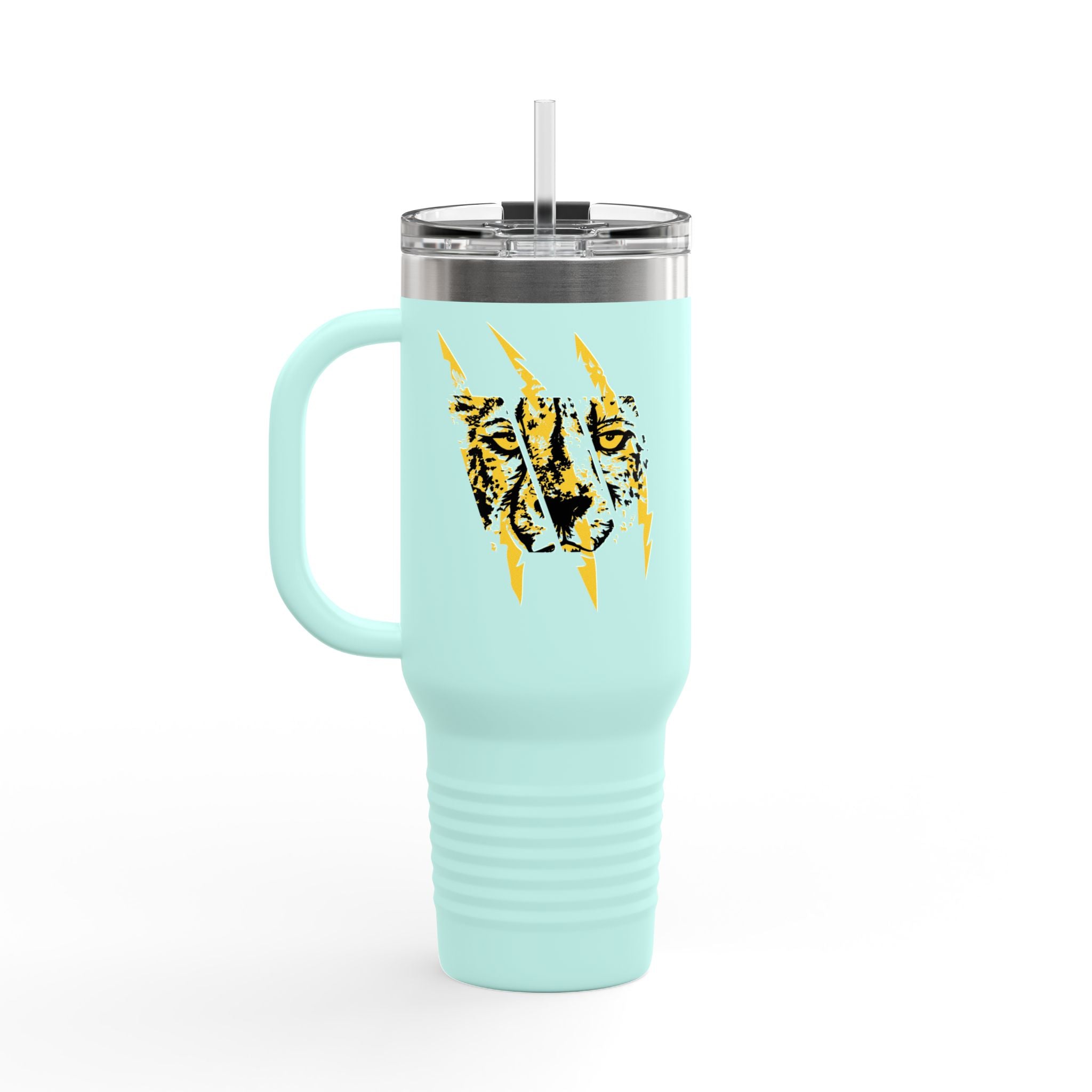 40oz Insulated Travel Mug — Yellow Tiger Claw Scratch Design
